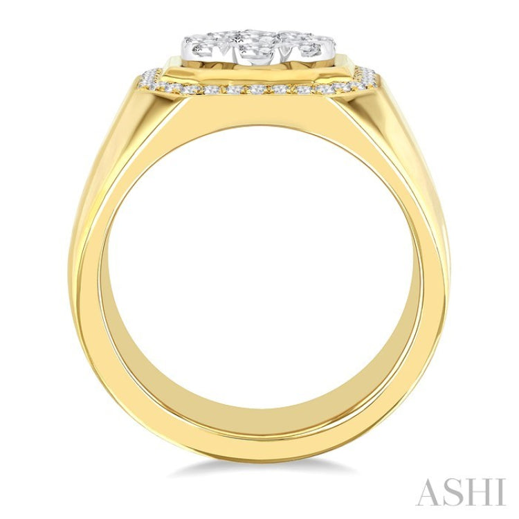 1 3/8 Ctw Octagonal Shape Lovebright Round Cut Diamond Men's Ring in 14K Yellow and White Gold