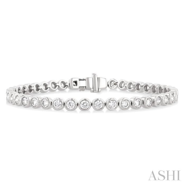 4 1/5 Ctw East-West Bezel Set Round Cut Diamond Tennis Bracelet in 14K White Gold